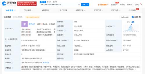 天眼查App显示,涉事酒店关联公司为北京王府井永光宾馆管理有限公司王府井分公司,其总公司北京王府井永光宾馆管理有限公司成立于2004年6月,法定代表人为朱永光,注册资本390万人民币,经营范围包括酒店管理、航空机票销售代理、代售火车票、商务咨询、旅游信息咨询等,由朱永光、李维娟、朱宁共同持股。2021年年报显示,该公司参保人数为5人。