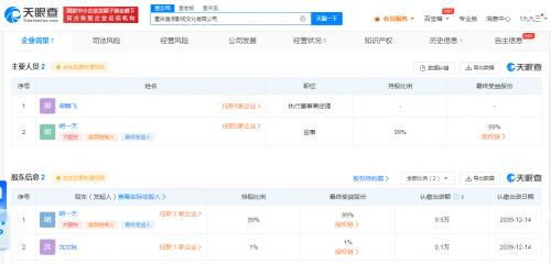 天眼查App显示,胡一天关联上海逸添影视文化工作室、重庆逸添影视文化有限公司2家企业,均为存续状态。其中,上海逸添影视文化工作室成立于2018年1月,为胡一天个人独资企业,出资额50万人民币,经营范围含影视剧、舞台剧策划与咨询;利用自有媒体发布广告;影视文化领域内的技术开发、技术服务等。重庆逸添影视文化有限公司成立于2020年12月,注册资本10万人民币,经营范围含组织文化艺术交流活动、文艺创作、文化娱乐经纪人服务等,梁瞬飞为法定代表人、执行董事兼经理,胡一天持股99%并任监事。