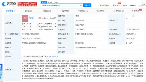 该公司成立于2020年8月,注册资本800万人民币,法定代表人、董事长、经理为宋娜,汪小菲任董事。股东信息显示,该公司由宋娜和北京食通达科技发展有限公司共同持股。