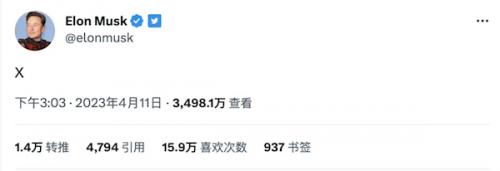 当地时间4月11日,马斯克发布推文“X”来回应今年4月份的一份文件,据悉,今年4月4日提交给法院的一份文件显示,推特已被直接并入一家名为X的公司,而X是一家新成立的空壳公司,私人持股,它的母公司是X控股公司,没有上市公司拥有X或X控股公司10%或更多的股份。