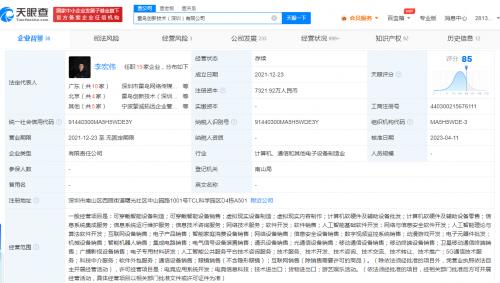 该公司成立于2021年12月,法定代表人为李宏伟,经营范围含可穿戴智能设备制造;虚拟现实内容制作;动漫游戏开发;5G通信技术服务;眼镜销售等。股东信息显示,该公司第一大股东为TCL创始人李东生。据悉,雷鸟为TCL旗下品牌,雷鸟创新致力于为用户提供高品质AR产品及服务。