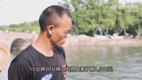 近日有网友发视频吐槽,称自己手机掉进了西湖里,结果一位衣服上写着“应急救援”的男子要价1500元,下水帮助打捞,此事引发热议。