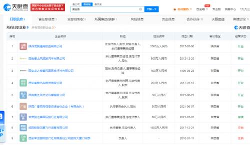 莫宝善名下共关联9家企业,其中7家为存续开业状态,包括西安秦之风旅游汽车有限公司、西安龙之旅秦风国际旅行社有限公司、西安秦之风文化传媒有限公司等,版图涉及旅行社、汽车、传媒等。风险信息显示,由莫宝善担任法定代表人并持股的西安秦之风旅游汽车有限公司曾因未如实记录安全生产教育和培训情况被罚款。