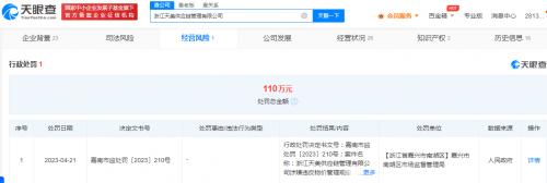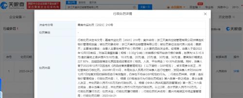 天眼查App显示,近日,浙江天美供应链管理有限公司因违反物价管理规定及药品管理法,被嘉兴市南湖区市场监督管理局罚款共计110万元。