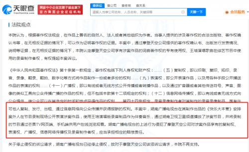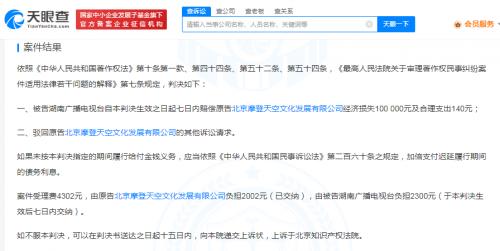 天眼查App显示,近日,北京摩登天空文化发展有限公司与湖南广播电视台侵害作品信息网络传播权纠纷一审判决书公开。