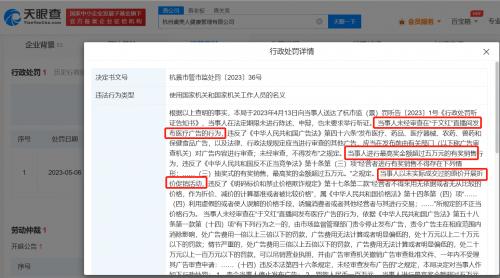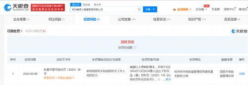 天眼查App显示,近日,杭州虞美人健康管理有限公司因未经审查发布医疗广告、有奖销售最高奖金额超5万等问题,被杭州市市场监督管理局西湖风景名胜区分局罚款200万元。