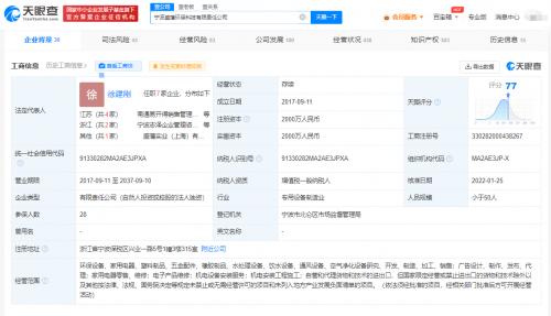 该公司成立于2017年9月,法定代表人为徐建刚,注册资本2000万人民币,由江苏易开得环保科技有限公司全资持股。据悉,演员王一博为易开得品牌代言人。