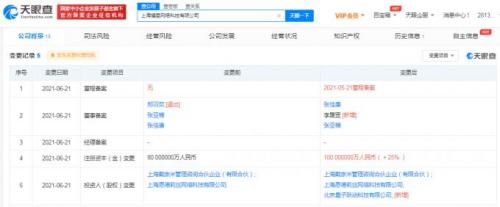 天眼查App显示,6月21日,上海斓星网络科技有限公司发生工商变更,新增字节跳动有限公司全资子公司北京量子跃动科技有限公司为股东,同时公司注册资本由80万人民币增加至100万人民币,增幅为25%。