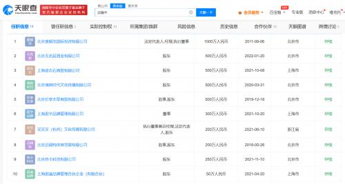 值得一提的是,买超与张嘉倪同为上海逛渝品牌管理合伙企业(有限合伙)合伙人,该企业成立于2021年4月,出资额50万人民币,经营范围含品牌管理、企业管理咨询、酒店管理、餐饮管理等,合伙人还包括佟丽娅、林允等。