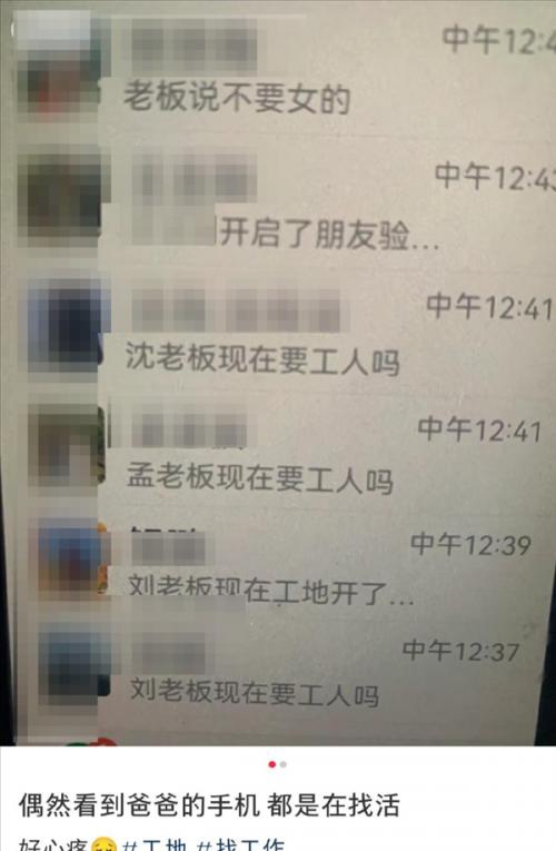近日,一位父亲求职的信息让女儿落泪,按照女儿的说法,偶然看到爸爸的手机,都是在找活干,好心疼。父亲连发了十几条求职信息,但都没得到回应。