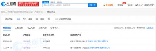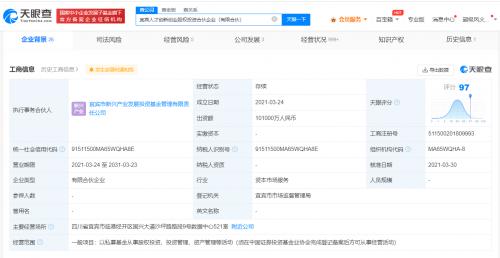 天眼查App显示,近日,宜宾南木叙岷新能源有限公司、宜宾丰川动力科技有限公司发生工商变更,股东均新增宜宾人才创新创业股权投资合伙企业(有限合伙)。后者成立于2021年3月,出资额10.1亿人民币,由宜宾市科教产业投资集团有限公司、四川省宜宾五粮液集团有限公司等共同出资。