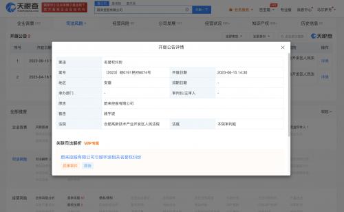 天眼查App显示,近日,蔚来控股有限公司新增一则开庭公告信息,被告为顾宇波,案由为名誉权纠纷,该案将于6月15日在合肥高新技术产业开发区人民法院开庭审理。