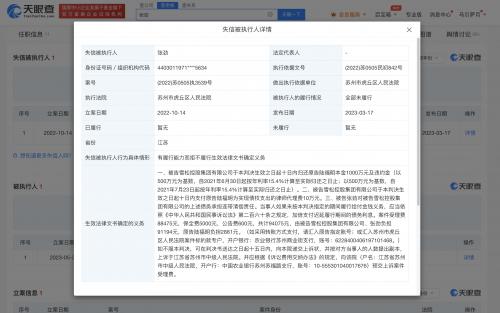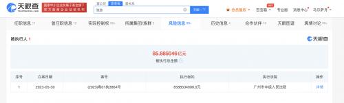 天眼查App显示,近日,雪松控股集团有限公司、雪松实业集团有限公司及两公司实控人张劲新增一则被执行人信息,执行标的85.88亿余元,涉及合同纠纷案件,执行法院为广州市中级人民法院。此外,今年3月,雪松控股集团有限公司及张劲因有履行能力而拒不履行生效法律文书确定义务,已被法院列为失信被执行人(老赖)。