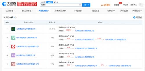 天眼查App显示,刘媛媛目前共关联5家企业,其中北京媛创文化传媒有限公司、北京媛创逆刘文化传媒有限公司等4家为存续状态,均为文化传媒公司。刘媛媛直接持有3家公司股份,并在全部4家公司担任执行董事、总经理职务。值得一提的是,刘媛媛还通过北京媛创逆刘文化传媒有限公司持有北京媛创兄妹文化传媒有限公司股份,该公司法定代表人为刘亚勇,疑似为刘媛媛哥哥。