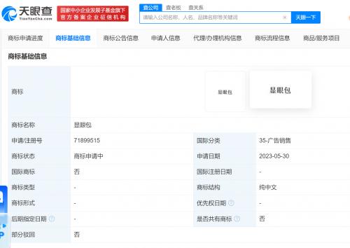 天眼查App显示,近日,安徽某公司申请注册两枚“显眼包”商标,国际分类涉及方便食品和广告销售,当前商标状态均为申请中。
