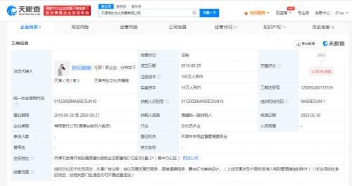 天眼查App显示,近日,天津韦驮文化传播有限公司经营状态由存续变更为注销。该公司成立于2018年8月,注册资本100万人民币,经营范围包括组织文化艺术交流活动、从事广告业务、舞台灯光音响设计等,由欧阳娜娜全资持股。知产信息显示,该公司已成功注册两枚“娜比星球”商标。