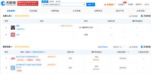 天眼查App显示,近日,杭州茂丰文化娱乐有限公司成立,法定代表人为潘婕,注册资本100万人民币,经营范围含游艺娱乐活动、互联网上网服务、食品销售、剧本娱乐活动、台球活动、组织文化艺术交流活动、体育竞赛组织等。股东信息显示,该公司由LGD关联公司杭州艾及帝文化创意有限公司、杭州摩丝森文万融文化娱乐有限责任公司共同持股。