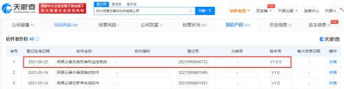天眼查App显示,杭州网易云音乐科技有限公司新增一则软件著作权信息,软件全称为网易云音乐版权维权监控系统,版本号V1.0.0,登记号2021SR0946772,登记日期为2021年6月25日。