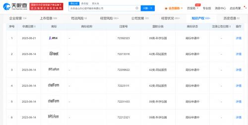 天眼查App显示,近日,金山办公(688111)申请注册“chatForm”“WPS airForm”“WPS Form”等商标,国际分类涉及网站服务、科学仪器等,当前商标状态均为申请中。