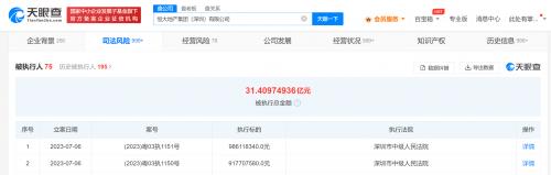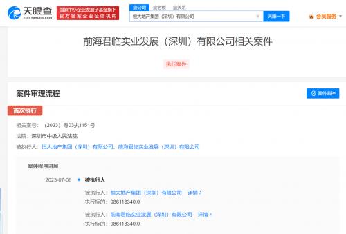 天眼查App显示,近日,恒大地产集团(深圳)有限公司及其全资子公司前海君临实业发展(深圳)有限公司新增2条被执行人信息,被执行总金额约19.04亿元,执行法院为深圳市中级人民法院。