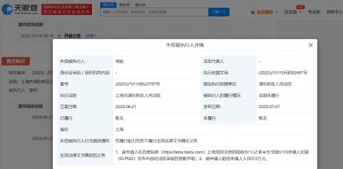 天眼查App显示,近日,因有履行能力而拒不履行生效法律文书确定义务,张某被上海市浦东新区人民法院列为失信被执行人(老赖),同时被限制高消费,涉及刘谋(PDD)与张某相关名誉权纠纷案件。据生效法律文书确定的义务显示,张某应在贴吧上使用其“心之束必负”账户向刘谋发布致歉声明,并赔偿刘谋3万元。今年6月,张某因该案被强制执行。此前,“心之束必负”曾发帖质疑PDD打假赛,PDD一方认为该用户的行为涉嫌诽谤,并发起诉讼。