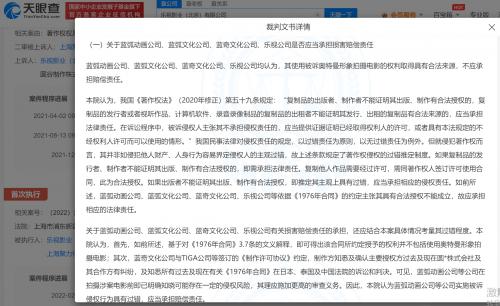 关联文书显示,此前,蓝弧动画公司、乐视公司、蓝弧文化公司等因侵犯奥特曼著作权被版权方起诉,被判停止侵权并赔偿250万元。案件流程信息显示,该案曾于2022年2月、2022年12月多次执行。