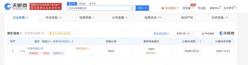 今日头条有限公司成立于2016年8月,注册资本1亿人民币,经营范围含技术开发、计算机系统服务、数据处理、应用软件服务、从事互联网文化活动等,由抖音有限公司全资持股。