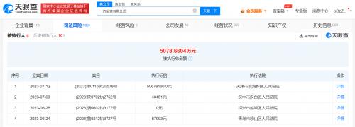 天眼查App显示,近日,一汽租赁有限公司新增一则被执行人信息,执行标的5067万余元,执行法院为天津市滨海新区人民法院。目前,该公司共关联4条被执行人信息,被执行总金额超5078万元。