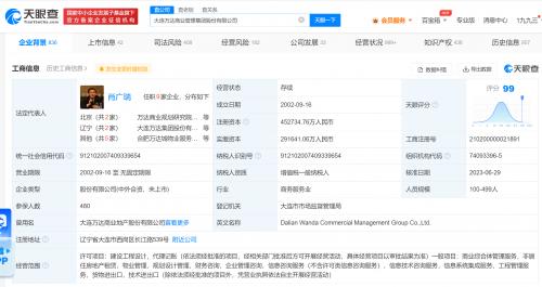该公司成立于2002年9月,法定代表人为肖广瑞,注册资本约45.27亿人民币,经营范围含商业综合体管理服务、非居住房地产租赁、物业管理等,由大连万达集团股份有限公司、Tencent Mobility Limited、王健林等多位股东共同持股。风险信息显示,该公司存在多个股权冻结信息。