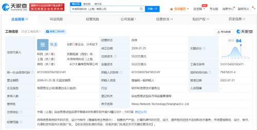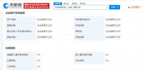 天眼查App显示,妙鸭相机关联公司未序网络科技(上海)有限公司成立于2006年1月,法定代表人为张龙,注册资本5520万美元,经营范围包括网络信息系统软件的开发设计与制作、销售自产产品、市场营销策划等,由新南有限公司全资持股。年报信息显示,该公司2016年至2022年参保人数均为0人。