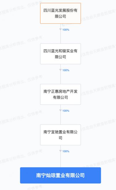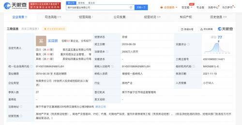 天眼查App显示,涉事小区开发商南宁灿琮置业有限公司成立于2018年6月,法定代表人为奚国鹏,注册资本2000万人民币,由四川蓝光发展股份有限公司间接全资持股。风险信息显示,该公司有多条被执行人、限制消费令及终本案件信息,未履行金额超2488万元。
