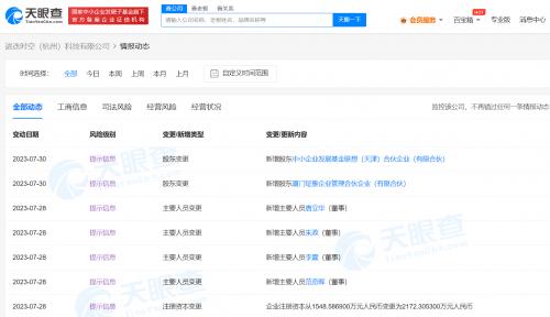 天眼查App显示,近日,进迭时空(杭州)科技有限公司发生工商变更,新增中小企业发展基金联想(天津)合伙企业(有限合伙)等为股东,同时公司注册资本由约1548.59万人民币增至约2172.31万人民币。