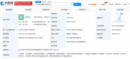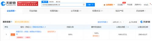 该公司成立于今年3月,法定代表人为孙燕江,经营范围含企业管理、社会经济咨询服务、信息咨询服务、技术开发等,由阿里巴巴(中国)网络技术有限公司全资持股。