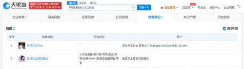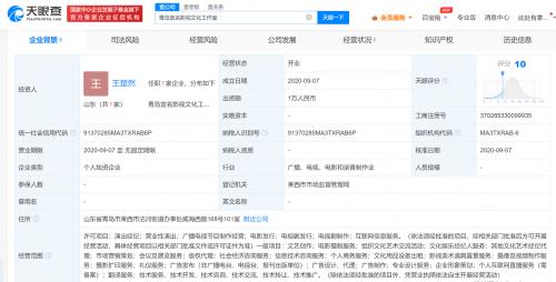 天眼查App显示,王楚然工作室关联青岛宣名影视文化工作室成立于2020年9月,为王楚然个人独资企业,出资额1万人民币,经营范围含演出经纪、营业性演出、广播电视节目制作经营、电影发行、电视剧发行、电视剧制作、互联网信息服务等。年报信息显示,该工作室近三年参保人数均为0。