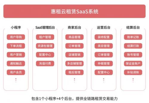 惠租云SaaS(咨询热线:13385817671)依托芝麻信用免押金体系,开发的租赁小程序SaaS系统,帮助租赁商家在垂直领域建立自己的租赁小程序,无需担忧技术研发和技术维护,技术、流量、运营、资源等全部一站搞定。助力数万租赁商户和千万消费者,享受更智能的租赁服务。
