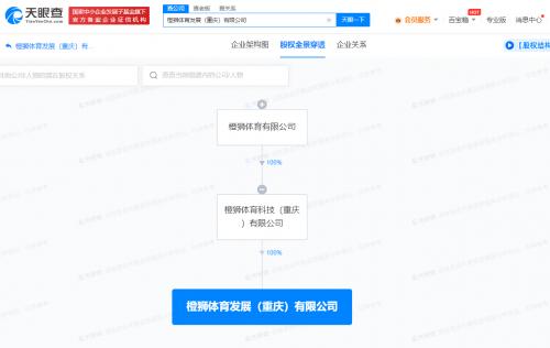 天眼查App显示,近日,橙狮体育发展(重庆)有限公司成立,法定代表人为王晨皓,注册资本500万人民币,经营范围含体育竞赛组织、体育赛事策划、体育场地设施经营、人工智能应用软件开发、人工智能硬件销售、演出经纪、互联网信息服务、旅游业务等。股权全景穿透图显示,该公司由阿里巴巴旗下橙狮体育有限公司间接全资持股。