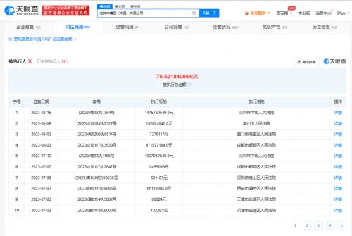 天眼查App显示,近日,花样年集团(中国)有限公司、深圳市花样年地产集团有限公司、惠州市花和房地产开发有限公司、深圳市飞高至卓实业有限公司等新增一条被执行人信息,执行标的14.7亿余元,执行法院为深圳市中级人民法院。