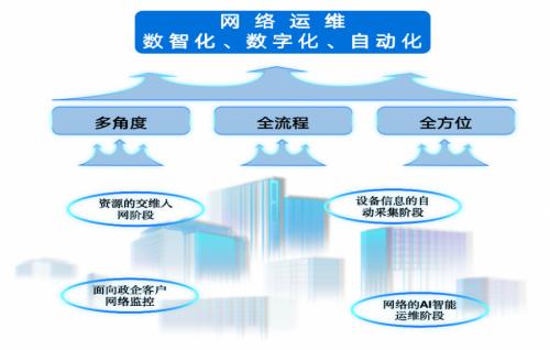要使网络运维整体向着数智化、数字化、自动化迈进,就不能仅仅停留在对网管系统的数智化提升上,而要保证在资源的交维入网阶段、设备信息的自动采集阶段、面向政企客户的网络质量监控阶段、网络的AI智能运维阶段,多角度、全方位的进行网络智慧运营体系的搭建,从而真正实现网络的智能化运营。