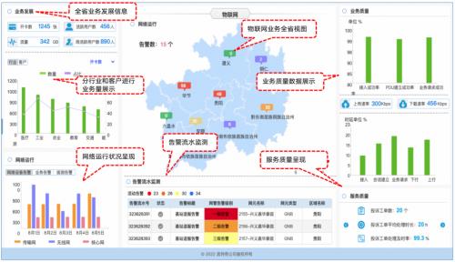 思特奇政企业务运维系统通过可视化展现能力,呈现业务发展、业务质量、网络运行、服务质量实现政企业务售前、售中、售后全流程监控,实现5G、物联网、云网等业务场景的各类网络运行状况、业务质量、设备及系统告警信息等各类信息的呈现,支撑政企客户业务的运维与运营。