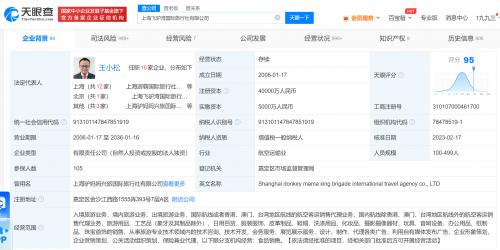 上海飞驴湾文化传播股份有限公司成立于2007年8月,法定代表人为马磊,注册资本约1.57亿人民币,由上海锦江资产管理有限公司、洪清华、上海鼎亮爵煜投资中心(有限合伙)等共同持股。上海飞驴湾国际旅行社有限公司成立于2006年1月,法定代表人为王小松,注册资本4亿人民币,由上海飞驴湾文化传播股份有限公司间接全资持股。