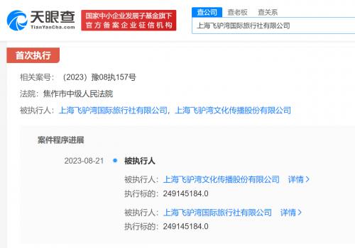 天眼查App显示,近日,驴妈妈旅游网两家关联公司上海飞驴湾文化传播股份有限公司、上海飞驴湾国际旅行社有限公司新增一则被执行人信息,执行标的2.49亿余元,执行法院为焦作市中级人民法院。