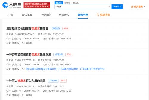 天眼查App显示,目前我国已有多项核废水相关专利申请,其中包括“一种核废水制氢后的处理方法”“含硝酸核废水处理方法”“一种核废水中铯和锶的去除方法”等核废水处理方法专利,以及“一种核废水精处理混床”“一种解决核废水再生利用的装置”“一种带有放射性监测结构的核废水储存装置”等核废水处理装置专利,申请人包括东华理工大学、青岛大学等多所大学,和三门核电有限公司等多家公司,目前,上述部分专利已获得授权。