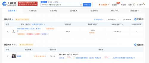 天眼查App显示,近日,天津市好未来教育科技有限公司成立,法定代表人为冯星星,注册资本200万人民币,经营范围含技术服务、科技中介服务、文艺创作、互联网销售等。股东信息显示,该公司由好未来旗下欣欣相融教育科技(北京)有限公司全资持股。