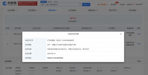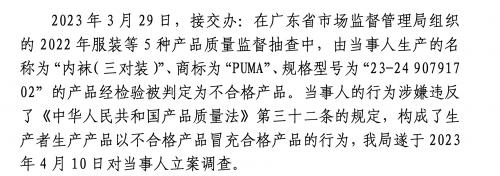 天眼查App显示,近日,PUMA关联公司彪马(上海)商贸有限公司因生产、销售以不合格产品冒充合格产品,被黄浦区市场监督管理局罚款2.95万余元,并没收违法所得8200余元。处罚事由显示,经检验,当事人生产的一款PUMA内袜产品纤维含量不符合标准要求。