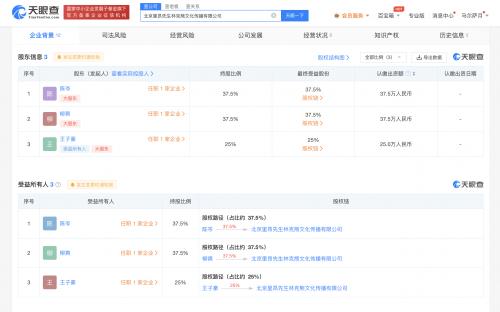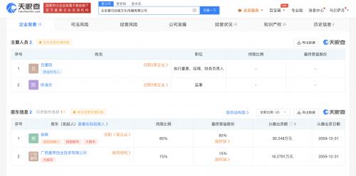 天眼查App显示,柳爽名下关联北京里昂先生林克熊文化传播有限公司、北京夏日回音文化传播有限公司2家企业,均为存续状态。其中,北京里昂先生林克熊文化传播有限公司成立于2019年1月,注册资本100万人民币,由柳爽以及其乐队成员陈岑、王子豪共同持股。北京夏日回音文化传播有限公司成立于2022年5月,注册资本约108.5万人民币,柳爽为第一大股东,吕重阳任执行董事、经理、财务负责人,柳爽乐队吉他手陈逸伦任监事。