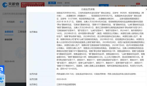 天眼查App显示,9月5日,江阴市澄江街道伍十三度麓咖啡馆、江阴市澄江街道金麓咖啡甜品馆、江阴市利港街道贤麓咖啡馆因侵犯注册商标专用权,分别被江阴市市场监督管理局罚款14万余元、9400余元、3500余元。
