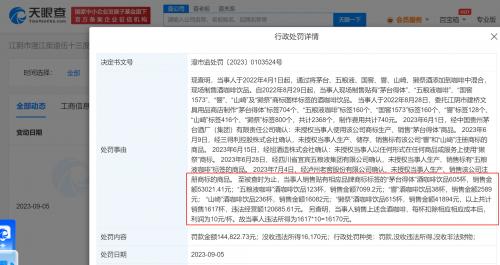 处罚事由显示,3家咖啡馆未经授权,将茅台、五粮液、国窖、響、山崎、獭祭酒添加到咖啡中混合,现场制售贴有相应品牌商标标签的“茅台得体”酒咖啡饮品、“五粮液咖啡”酒咖啡饮品、“響”酒咖啡饮品、“山崎”酒咖啡饮品、“獭祭”酒咖啡饮品。经确认,上述品牌酒企未授权当事人生产、销售有其注册商标的商品。上述侵权饮品扣除相应成本后,利润为10元/杯,3家咖啡馆分别销售1617杯、112杯、42杯。