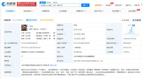 亚洲星光文化传媒(北京)有限公司成立于2014年4月,注册资本142.98万元,法定代表人为马乐,经营范围包括组织文化艺术交流活动(不含演出);经济贸易咨询;公共关系服务;营销策划;影视策划;演出经纪等。股东信息显示,该公司由马乐、东阳向上影业有限公司、王忠磊、胡海泉、苏芒等共同持股。
