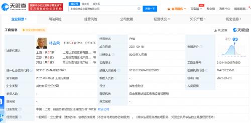 上海庭林企业管理有限公司成立于2021年9月,法定代表人、执行董事为林吉荣(张庭丈夫),注册资本5000万人民币。股权全景穿透图显示,该公司由上海庭然科技发展有限公司和上海达尔威实业有限公司共同持股,庭然科技为张淑琴(张庭)关联公司,达尔威实业为张庭夫妇共同关联公司。