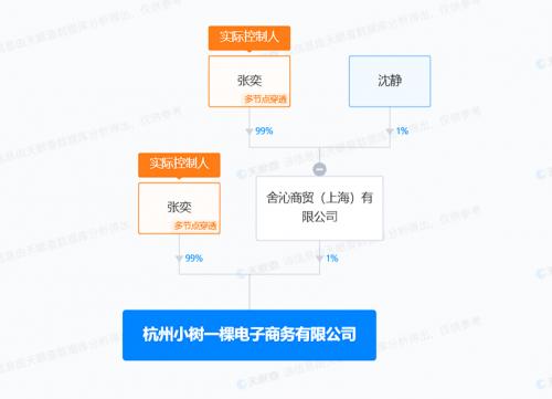 天眼查App显示,近日,杭州小树一棵电子商务有限公司成立,法定代表人为周凤萍,注册资本100万人民币,执行董事为张奕(张大奕),经营范围含食品销售、互联网销售、服装服饰零售、化妆品零售、日用百货销售等。股东信息显示,该公司由张奕及其名下舍沁商贸(上海)有限公司共同持股。